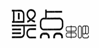 The Chinese characters in this mark transliterate to "JU DIAN CHUAN BA" and this means "TOGETHER POINT SERIES BAR" in English.