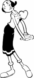 The mark consists of a cartoon design of a woman with her hips and head leaning to the left, her arms held together with palms facing down and to the right, her right leg extended to the right and a design of a heart protruding from her chest.
