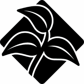 The mark consists of a stylized design of a plant with three leaves centered over a diamond shape that is rotated 45 degrees to resemble a square standing on one of its points. The plant and the diamond are presented in black and white, with contrasting outlines that define the edges of the plant.