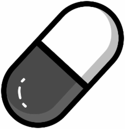 The mark consists of a capsule with a light top and dark bottom on a diagonal slant from left to right incorporating shading and lighting details.