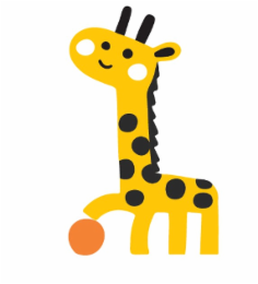 The mark consists of a stylized image of a giraffe balancing a ball on one of the legs; the color of the giraffe is yellow with black dots in the image.