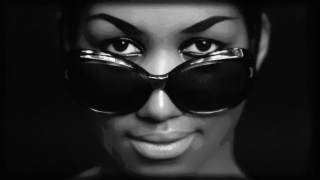 The mark consists of the photographic portrait of Aretha Franklin wearing sunglasses slightly below her eyes, contained within a shaded rectangular carrier.