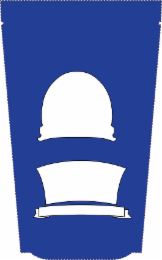 The mark consists of the trade dress characterizing packaging for the goods. The packaging comprises a vertically oriented shape that is wider at the top and tapers to a more narrow bottom which has a slight curve suggesting a package full of salt that can stand on its own with three label parts oriented in the middle of the vertical sides packaging and are placed in the central and lower and parts of the overall packaging orientation; and the top label part being a dome-shaped banned that is rounded at the top like an arch, and curves outward at the bottom edges with notches and outward curves at the bottom edges of the dome shape; the middle label has a banner-like shape that is curved on the upper, lower and side parts of the label shape; and a bottom label being a ribbon-style shape that is narrow with notched or pointed ends, resembling a ribbon. The background of the packaging features a dark blue color that is claimed as a feature of the mark. The black dotted lines show placement of the mark in relation to overall packaging shape, the opening feature shown as a notches on both sides of the top of the packaging are not claimed features of the mark. The color white in the mark represents the label part consisting of unclaimed color and the color white is not a claimed feature of the mark.