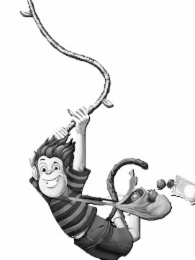 The mark consists of a playful smiling monkey swinging from a tree vine with his fruit satchel hanging off of his shoulder and wearing shorts, a t-shirt and sneakers.