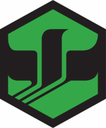 The mark consists of a black stylized bird in flight inside a black hexagonal border with green infill.