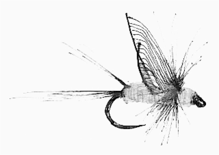 The mark consists of an image of a fishing fly in the form of an insect with folded hackle wing, dubbed body, tail, hook, hook eye, and rooster hackle.