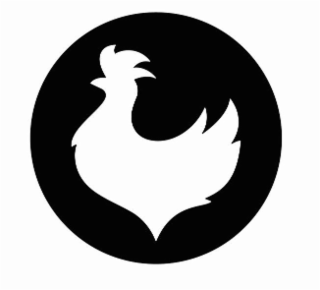 The mark consists of a circle with a silhouette of a chicken with a heart shaped body inside the circle.
