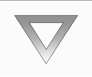The mark consists of a stylized equilateral triangle positioned with one point facing downward. The triangle is outlined with a thick border, and the interior of the triangle is hollow, forming a smaller inverted triangle shape in the center. The design has a gradient shading effect that gives the border a dimensional appearance.