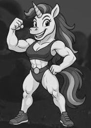 The mark consists of a cartoon muscular humanoid unicorn.