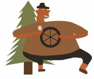 The mark consists of The mark consists of stylized drawing of a man with orange skin holding a white beverage container with one hand and a black wheel in the other, wearing a black hat, black pants and a brown colored shirt in front of a green tree.