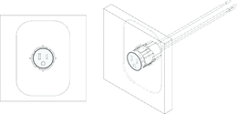 The mark consists of a three-dimensional configuration of an electrical outlet comprising a cylindrical face flush-mounted within a wall surface, without a cover plate, trim, or visible fasteners, and with the cylindrical outlet face being uniformly circular and flush with the wall surface, and surrounded by a narrow, concentric reveal that separates the outlet from the adjoining wall and creates the appearance that the cylindrical outlet is floating within the wall; no other features, markings, or surface ornamentation are visible on the face of the outlet when installed; the broken lines depicting the surrounding wall and the behind-wall cover plate indicate placement of the mark on the goods and are not part of the mark.