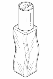 The mark consists of a three-dimensional configuration of a bottle with a cylinder cap. The sides of the bottle are wavy rather than straight. The broken lines around the stylized letter "g" indicates a portion of the packaging that is not part of the mark.