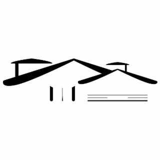 The mark consists of a stylized house design. The upper portion of the mark contains two triangular elements with two vertical supporting lines beneath them, together with four diagonal lines that progress in thickness from top to bottom, all collectively forming the roof. The lower portion shows three vertical lines that form a door positioned at the lower left side of the roof structure, accompanied by four horizontal lines to its right that depict a flower bed.