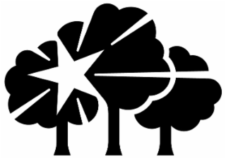 The mark consists of a silhouette of three trees in varying sizes, with a star shining in between the first and second tree and six rays of light radiating out of the star.