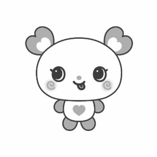 The mark consists of a character with heart-shaped ears, each containing a smaller heart shape inside. The character is depicted with its tongue sticking out and spiral shapes on each cheek. A heart-shaped design appears on the body.