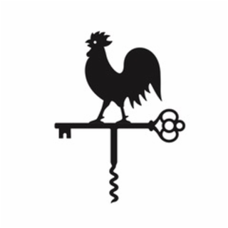 The mark consists of the silhouette of a rooster standing on a horizontal key vane. The key features a corkscrew extending downward from the center of the key. The rooster is facing left.