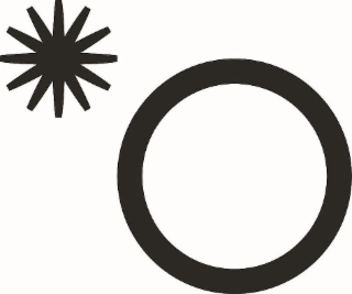 The mark consists of a solid star with twelve equidistant arms radiating outward from a central point, and positioned slightly above and to the left of a larger circle consiting of a solid band.
