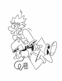 The mark consists of an individual holding a coffee cup in one hand and a coffee pot in the other hand. The coffee pot is plugged into an electrical wall socket while the coffee is being poured into the coffee cup causing the individual to experience an electrical shock.