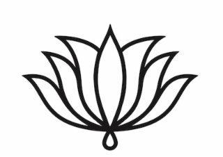 The mark consists of a stylized lotus flower with six symmetrical petals radiating upward from a teardrop-shaped element at the bottom.