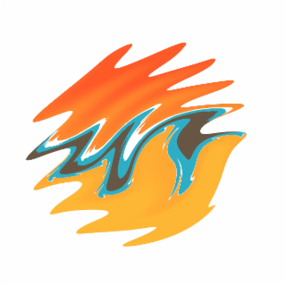 The mark consists of The mark consists of a stylized abstract design resembling flames and waves arranged in a circular pattern, with the upper portion in orange, the middle portion in turquoise and brown, and the lower portion in yellow. The color(s) orange, turquoise, brown, and yellow are claimed as a feature of the mark.