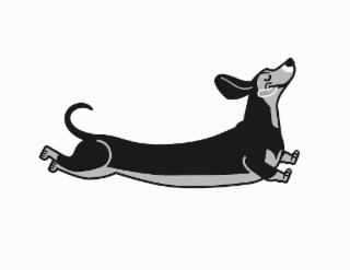 The mark consists of A dachshund dog with tongue out.