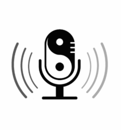 The mark consists of a microphone with a body and a stand, with a vertical yin and yang symbol forming its body, with three progressively larger arcs appearing to emanate from the right side of the body and three progressively larger arcs appearing to emanate from the left side of the body.