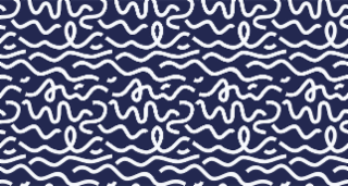 The mark consists of two-dimensional trade dress applied to Applicant's goods. The pattern consists of a repeating pattern of abstract white squiggle and wave-like lines on a dark blue background. The design features a combination of looping, curved, and undulating linear elements arranged in horizontal rows. Each row alternates in pattern, with varying widths and curvatures to create a sense of movement and rhythm across the surface.