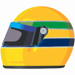 The mark consists of a design of a fanciful helmet consisting primarily of the color yellow with white, green, blue and black stripes.