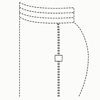 The mark consists of a rectangular label positioned just below the left hip across the vertical seam of a garment. The matter shown by the broken lines is not a part of the mark and serves only to show the position of the mark.