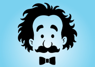 The mark consists of a cartoon caricature of a face cutout with black Curly hair, eyebrows, circle pupils, ears, nose, mustache and a bowtie. The face cutout is on a solid blue background.