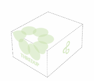 The mark consists of the trade dress of the product packaging used in connection with Applicant's services. The product packaging is comprised of a cluster of overlapping translucent ovals, arranged in a circular, wreath-like formation, appearing prominently on the top and front panels of the box. The ovals are rendered in a light green color. The word "THREDUP" is written in large, bold, light green font and is positioned beneath the oval design on the front panel. A stylized "T" in light green, centered on the right-side panel of the box.