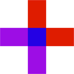 The mark consists of a plus design composed of red-orange and magenta arms surrounding a central purple square.