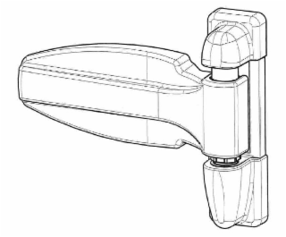 The mark consists of a three-dimensional representation of a hinge having a base with a flat mounting plate and two mounting lugs and an elongated, spade-shaped door mounting strap. The stippling is for shading purposes only.