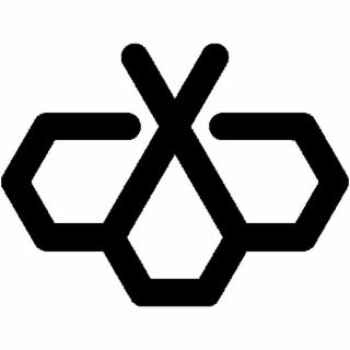 The mark consists of an inverted diamond at the bottom with two additional diamonds positioned at the top left and top right, sharing the left and right lines of the bottom shape. The upper outlines of the two top diamonds are partially missing, and the shared lines extend outward to form an “X” shape at the center of the design.
