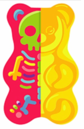 The mark consists of a highly stylized bear design with the right half in yellow and orange and the left half principally in red but with green facial features, a blue ear and other design elements on the left half in yellow, blue, purple and pink.