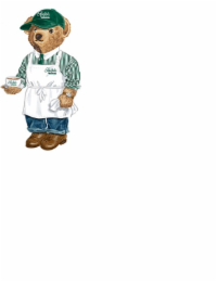 The mark consists of drawing of a light brown anthropomorphic bear standing on two legs, dressed in a green cap displaying "RALPH'S" in white, cursive letters appearing above the word "COFFEE", which appears in white capital letters against the green background formed by a banner extending from the lower right portion of the letter "R", dressed collared shirt with green and white pinstripes, a green tie, jeans with cuffs, brown wingtip shoes, and a white apron displaying a stylized depiction of the word "RALPH'S" in green, cursive letters appearing above the word "COFFEE", which appears in white capital letters against the green background formed by a banner extending from the lower right portion of the letter "R" on the upper right side of the apron. The anthropomorphic bear is holding a cup of coffee in the left hand, with the word "RALPH'S" in green, cursive letters appearing above the word "COFFEE", which appears in green capital letters against the white background formed by a banner extending from the lower right portion of the letter "R", and in the left hand, the bear is holding a white towel and wearing a wrist watch.