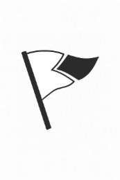 The mark consists of a two-piece triangular flag wherein one piece is dark and the other is light spaced from the first piece attached to a pole.