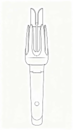 The mark consists of a handheld device with a cylindrical handle and a flared, open-top attachment. The handle features a slightly tapered shape with a circular button near the lower portion and a horizontal slot or indentation positioned near the middle. The upper section transitions into a rounded housing that supports a vertically aligned attachment resembling a series of elongated, curved fins or blades arranged symmetrically around a central axis. Two opposing blades extend upward from the center, forming a narrow gap between them.