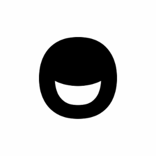 The mark consists of a solid squircle shape containing a cutout in the shape of an upturned crescent, forming a smile-like opening in the squircle.