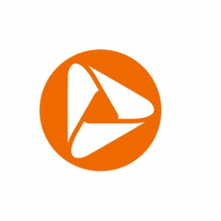 The mark consists of a white stylized triangle inside an orange circle. The color white around the circle represents background and is not part of the mark.