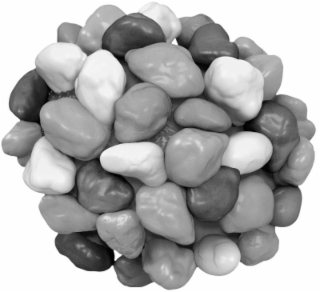 The mark consists of a two-dimensional cluster of small pebble-like candies surrounding a central core.