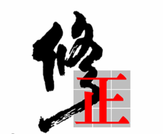 The Chinese characters in this mark transliterate to XIU ZHENG and this means Correction in English.