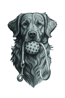 The mark consists of an illustration of a retriever dog's head facing forward holding a ball and a leash in its mouth, depicted in a realistic style.
