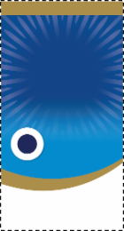 The mark consists of trade dress applied to one side of three-dimensional product packaging. The product packaging consists of a gold horizontal band at the top, followed by a blue background ending in a curved border. The blue background is dark blue at the top and transitions to light blue towards the bottom. The blue background features the design of light-blue rays emanating from the center. At the bottom left of the blue background is a dark blue circle with a white border. Below the blue background is a gold curved band. Below the gold curved band the background of the packaging is white. The dotted outline of the packaging is intended to show the position of the mark and is not part of the mark.