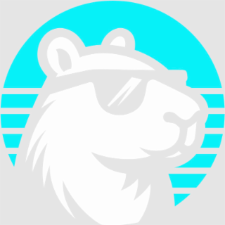 The mark consists of A stylized white cartoon rodent wearing sunglasses with white shine marks on the visible lens, with a circular light blue background with horizontal lines cut out of it. The color gray represents background or transparency and is not claimed as a feature of the mark.