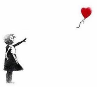 The mark consists of a girl in black and white with her arm outreached to a heart shaped red balloon she has just let go.