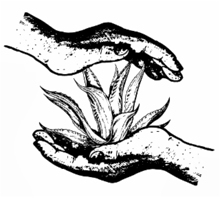 The mark consists of A hand with its palm facing upwards with agave sitting in the palm with a second hand above the agave with its palm facing downwards.