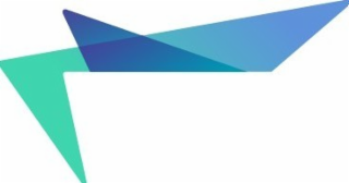 The mark consists of a stylized geometric shape featuring overlapping triangular elements with the right two triangular designs appearing in blue and the left triangular design in green.