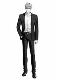The mark consists of a stylized drawing of a male character with short hair, wearing a suit jacket, dress shirt, trousers, and shoes, with one hand in his pocket and the other at his side.