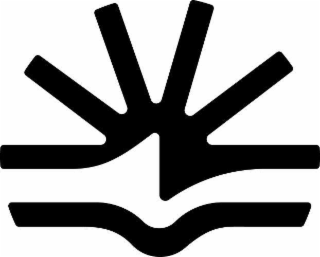 The mark consists of a stylized sun with six rays rising behind a stylized mountain over a stylized curved line.